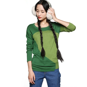 - 2015春款打底毛衫拼色毛衣 长袖套头针织衫 莺 蓝色