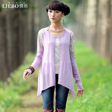 51130454 杏雨 清新色系花边拼接长袖针织衫 |