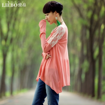51130454 杏雨 清新色系花边拼接长袖针织衫 |